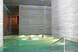 The Therm Vals was designed by Peter Zumthor in 1996 as part of a hotel. It is built over the only thermal springs in Graubunden Canton, Switzerland.The idea was to create a cave like experience that was comforting and relaxing. As you can see the bath vals are built under a bed of grass. It is buried into the hillside right below the hotel.