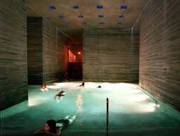 The bath vals were created to make the visitor feel luxurious and look at bathing through another perspective. The open and enclosed, light and dark spaces make you have a great, relaxed experience at the baths. The enclosed,internal space make the person have peace and quiet. Also, it allows the guest to explore the different rooms and temperatures in the space. The outdoor space allows you to also find peace and relax while bathing. The cool thing about the baths is in or out you can have light or dark in both areas and temperatures.